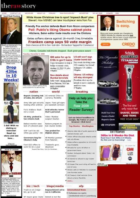 The Raw Story看上去处处都有可能有广告挤进来,损害了内容的易阅读性。