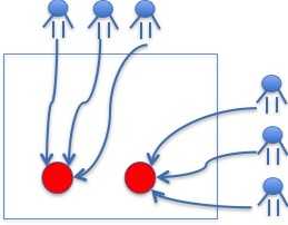 对于协同过滤而言,user之间或者deal之间的图距离是两跳,对于更远距离的关系则不能考虑在内。而图算法可以打破这一限制,将user与deal的关系视作一个二部图,相互间的关系可以在图上传播。Simrank[2]是一种衡量对等实体相似度的图算法。它的基本思想是,如果两个实体与另外的相似实体有相关关系,那它们也是相似的,即相似性是可以传播的。