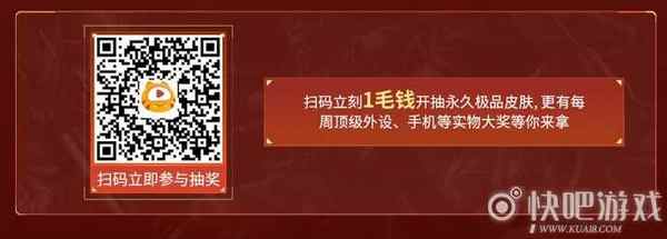 在活动期间,玩家在网页中进行二维码扫码,立刻1毛钱开抽永久极品皮肤,更有每周顶级外设,手机等实物大奖等你来拿。