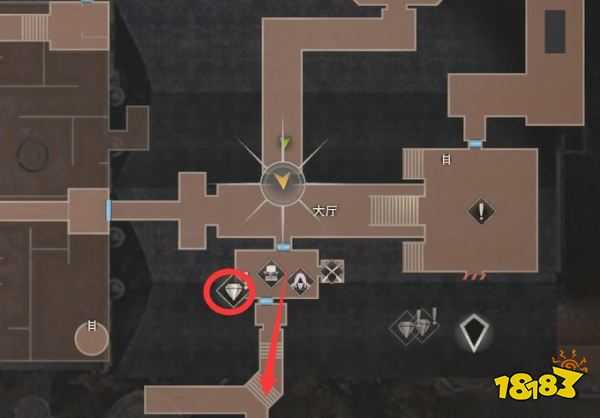 5.蓝色徽章的位置都已经在地图上标出了,刚进大厅时右边高处有个蓝色徽章。